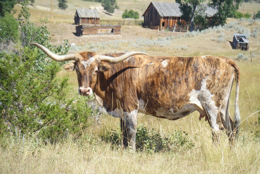Great producing cow with flat twisty horns.Mother of Blue Caliber owned by Bill and Judy Meridith.