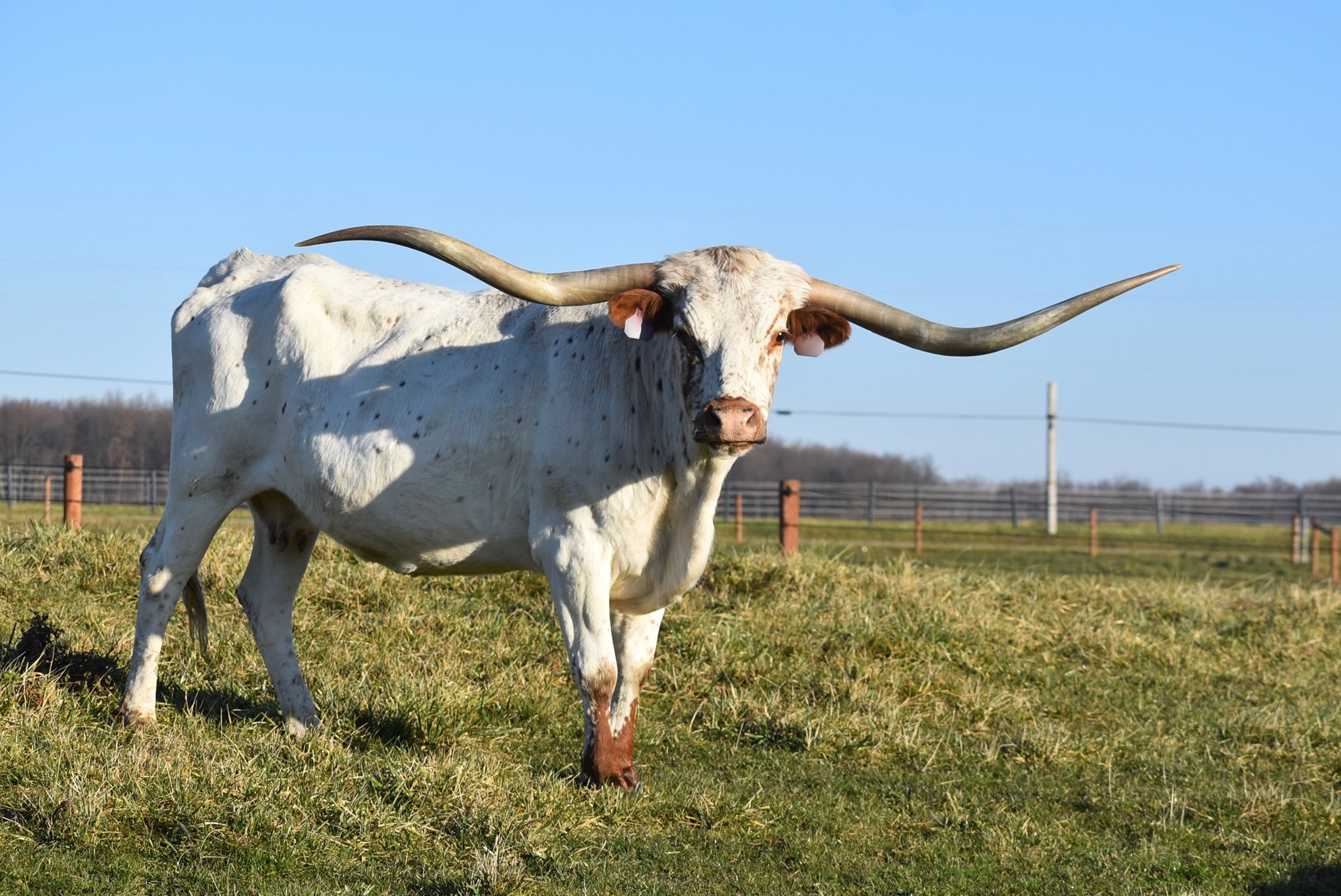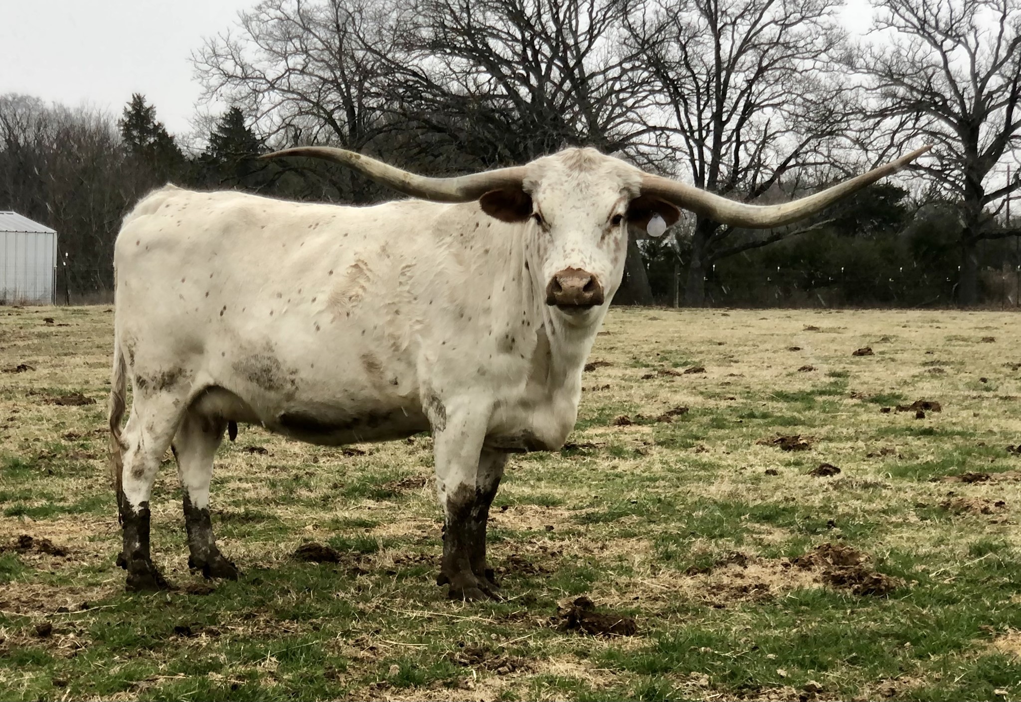 This massive Rio Daughter has over 81” of rolling twisted horns and still going! Bred to PCC Runaway Gray for a spring 2023 calf